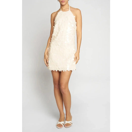 Uneven Sequins Halter Mini Dress in Ivory