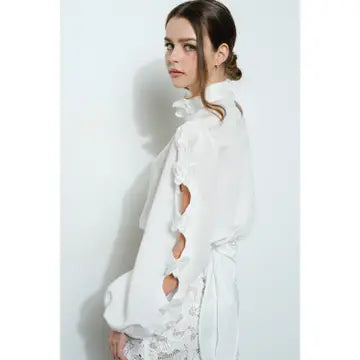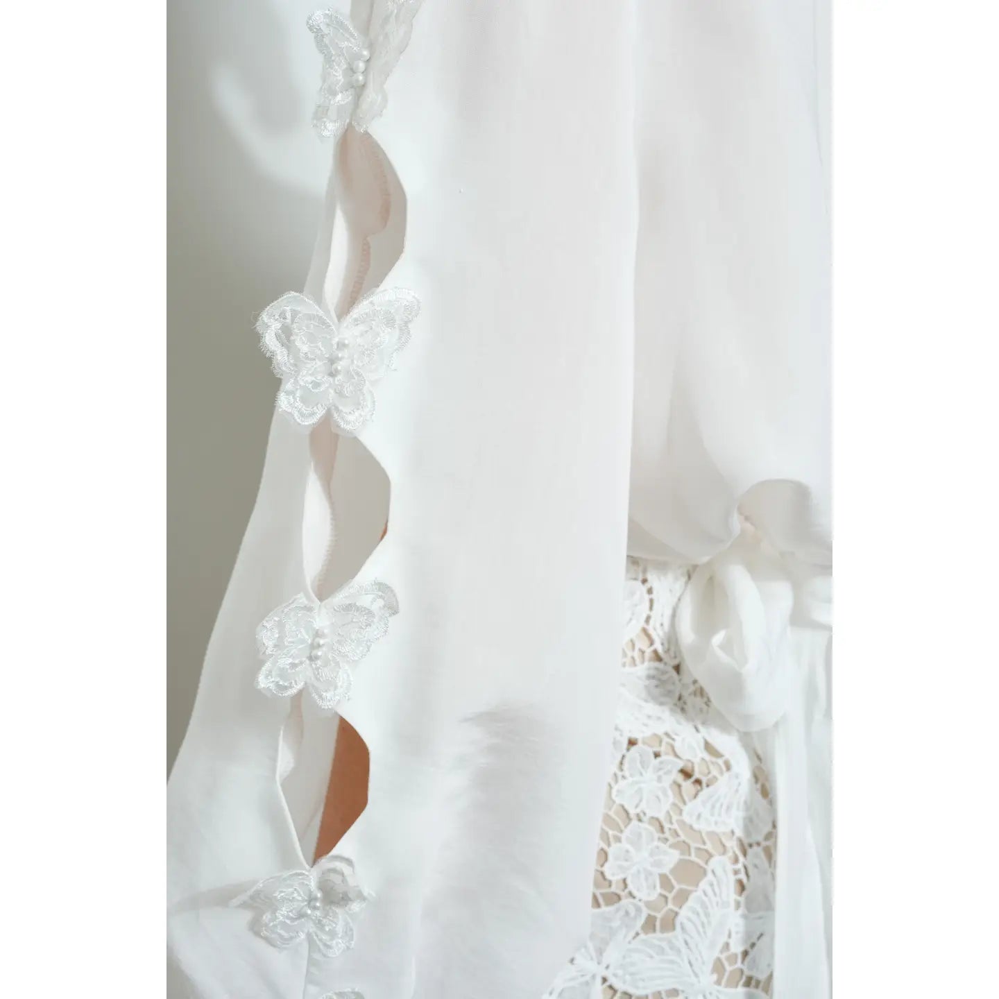 Butterfly Lace Sleeve Blouse with Back Tie in White