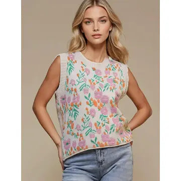 Long Sweater Cardigan with Floral Sleeve Detail - Cream