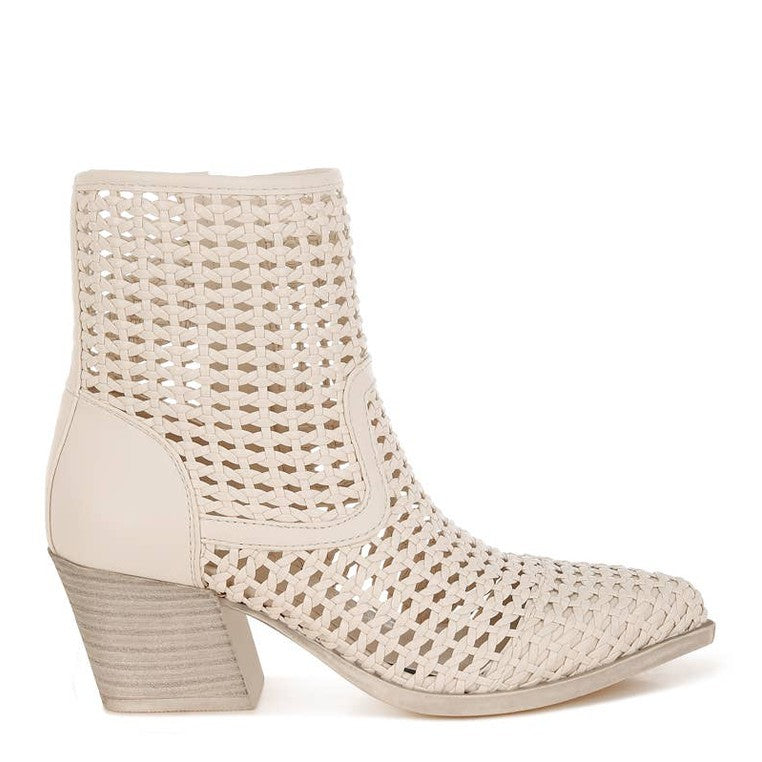 Artisole Woven Pleather Block Heel Booties - Off-White