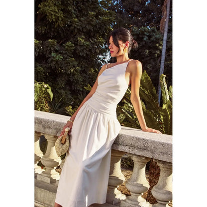 Heaven Sent Drop Waist Ruched Maxi Dress in Ivory
