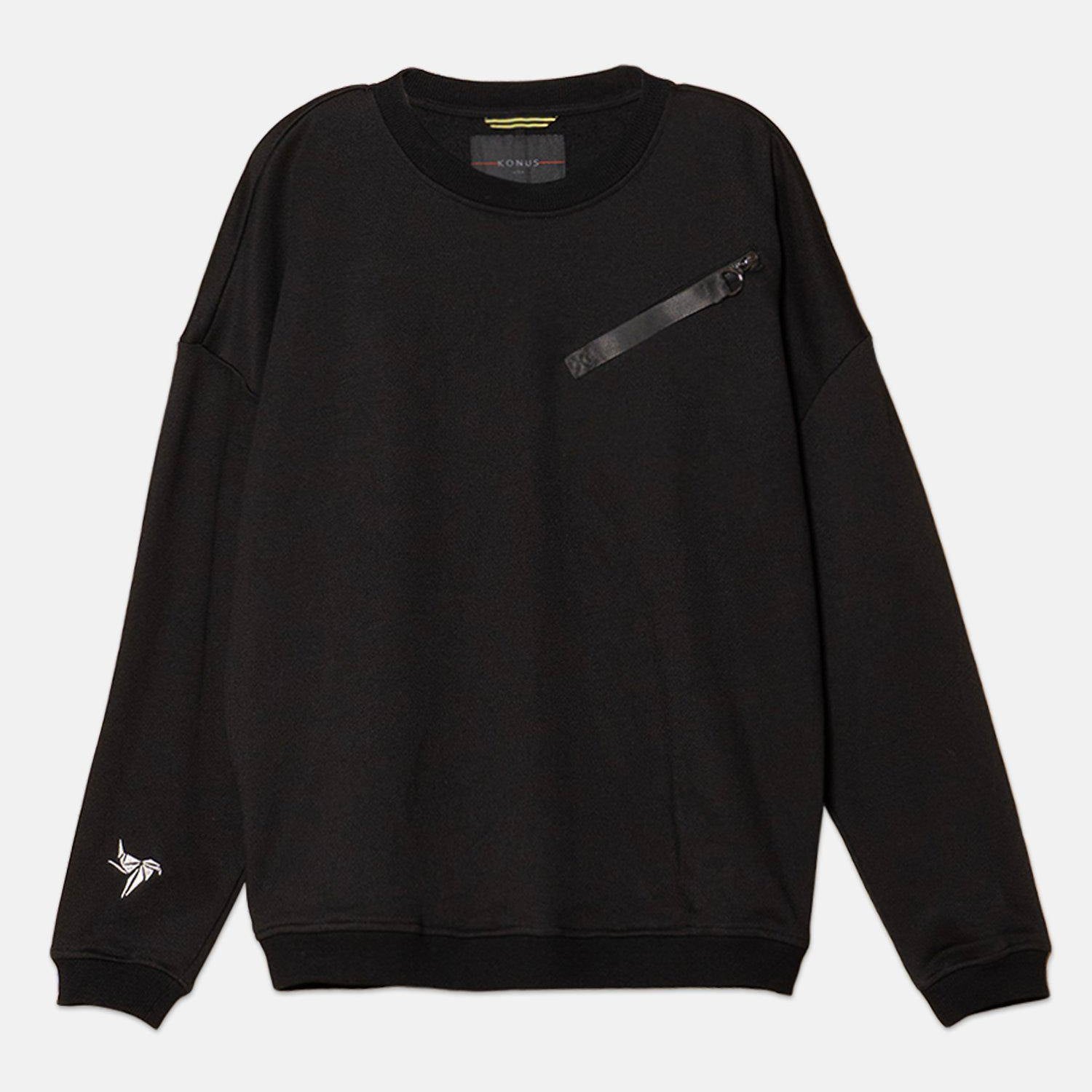 Homme Zipper Chest Pocket Sweatshirt in Black