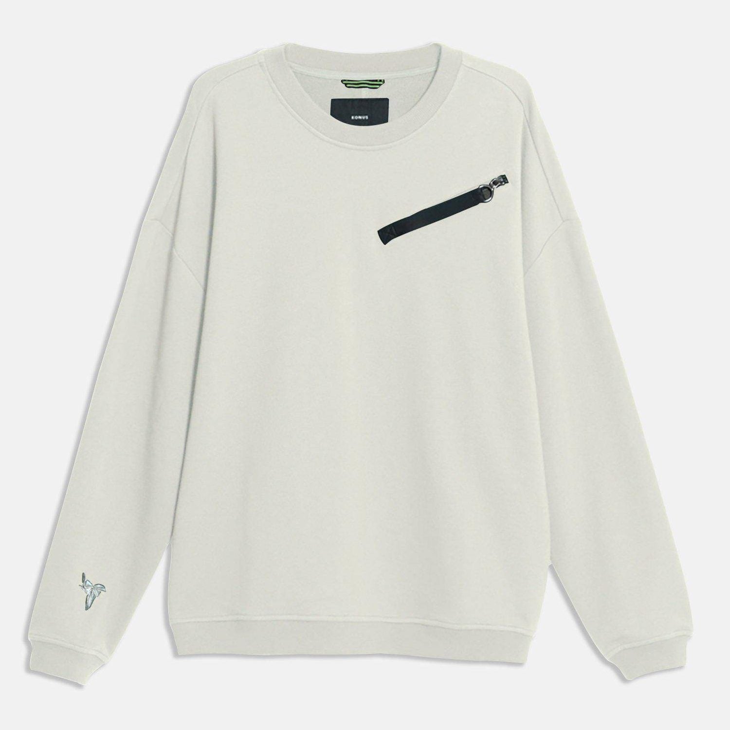 Homme Zipper Chest Pocket Sweatshirt in Off White